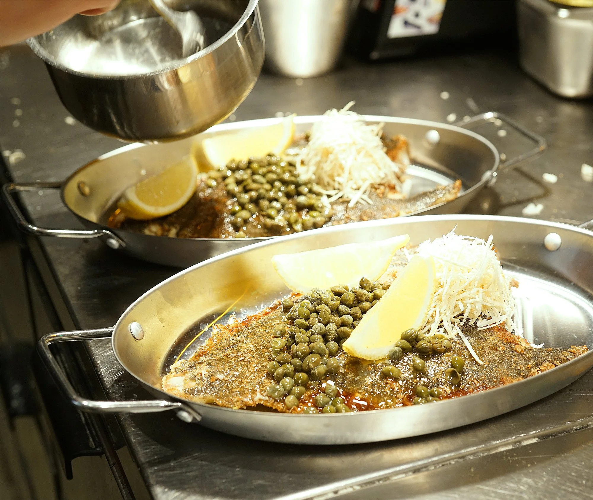 Smörstekt piggvar, jordärtskocka, sauce supreme